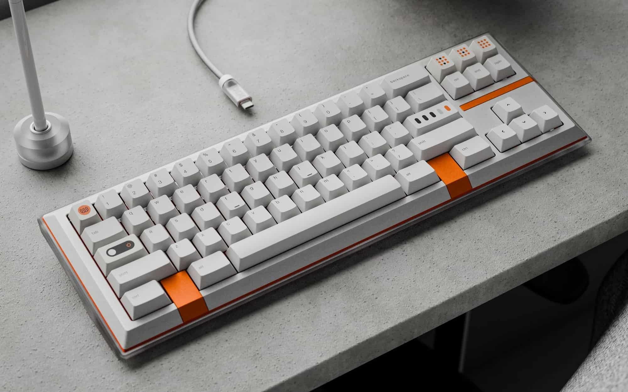 → Abstract Minimal is a new keycap set from WiredIn and Keyreative that is stunningly uncomplicated. It reminds me of retro Mac keyboard caps or some Teenage Engineering products with its subtle font/letter printing, off-grey and cyan tones, and marvelous contrasting dark modifier keys. Throw in a brand new artisan from MVKB, a few extra orange and black novelties to make it pop, a colour-matched cable, and this set is chock-full of goodies to make it a packed collection. I'm personally super happy that WiredIn is continuing to expand their product line and collaborations—my X-Ray cable from them is used constantly and the quality is superb.